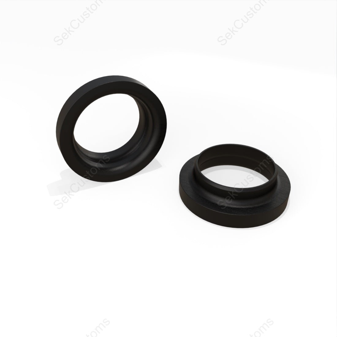 SPACER SET : SPRING SPACERS ARE DESIGNED TO BE PLACED EITHER ON TOP OF OR BELOW THE SPRING (DEPENDING ON THE VEHICLE). FRONT SHOCK SPACERS ARE INSTALLED ABOVE THE SHOCK ABSORBER MOUNTING PLATE. REAR SHOCK SPACERS ARE USUALLY MOUNTED ABOVE THE REAR SHOCK ABSORBER.