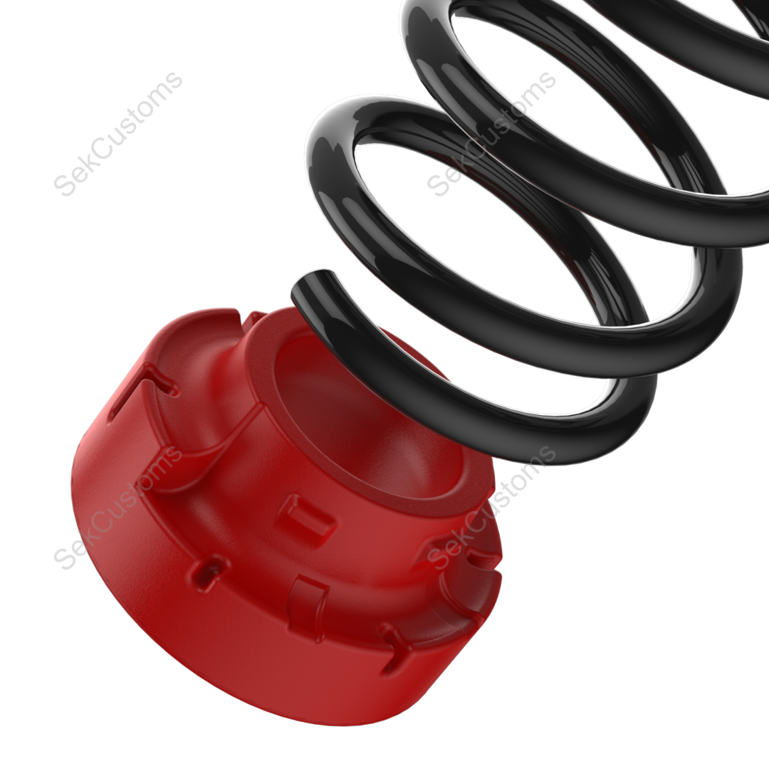 COIL BOOSTERS : CAN BE POSITIONED EITHER ABOVE OR BELOW THE SPRING, DEPENDING ON YOUR VEHICLE’S SUSPENSION DESIGN. FRONT STRUT EXTENSIONS ARE MOUNTED ON TOP OF THE SHOCK ABSORBER’S UPPER BRACKET, WHILE REAR STRUT SPACERS ARE USUALLY INSTALLED ABOVE THE REAR DAMPER UNIT.