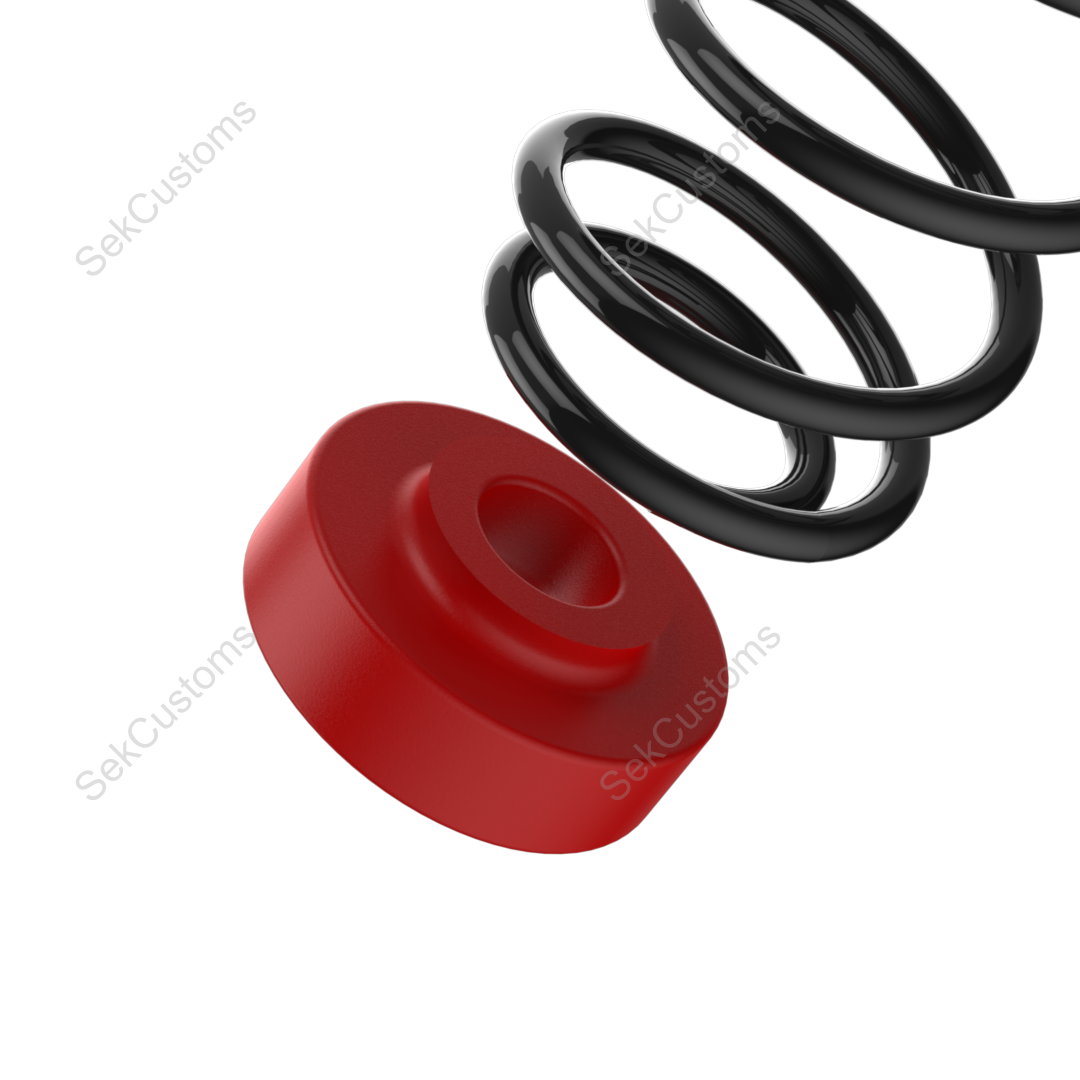 SPACER SET : SPRING SPACERS ARE DESIGNED TO BE PLACED EITHER ON TOP OF OR BELOW THE SPRING (DEPENDING ON THE VEHICLE). FRONT SHOCK SPACERS ARE INSTALLED ABOVE THE SHOCK ABSORBER MOUNTING PLATE. REAR SHOCK SPACERS ARE USUALLY MOUNTED ABOVE THE REAR SHOCK ABSORBER.