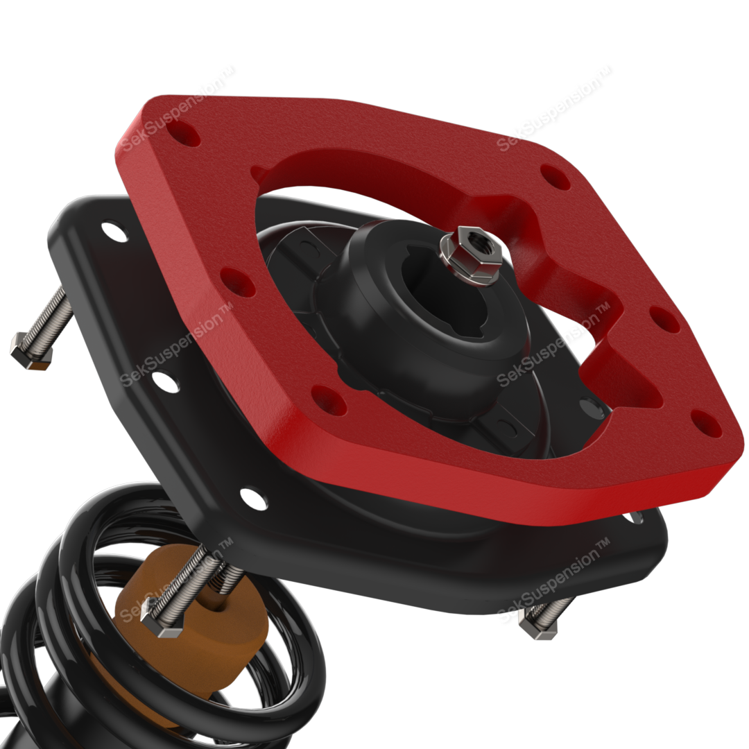 NO SHOCK ABSORBER DISASSEMBLY REQUIRED! THIS INSTALLATION IS FAST AND SIMPLE. JUST REMOVE THE STRUT, INSTALL THE SPACER, AND USE LONGER BOLTS TO SECURE IT. COMPRESS THE SPRING SLIGHTLY TO FIT THE SPACER. IN AROUND ONE HOUR, YOUR VEHICLE WILL BE LIFTED AND READY FOR BETTER GROUND CLEARANCEE.